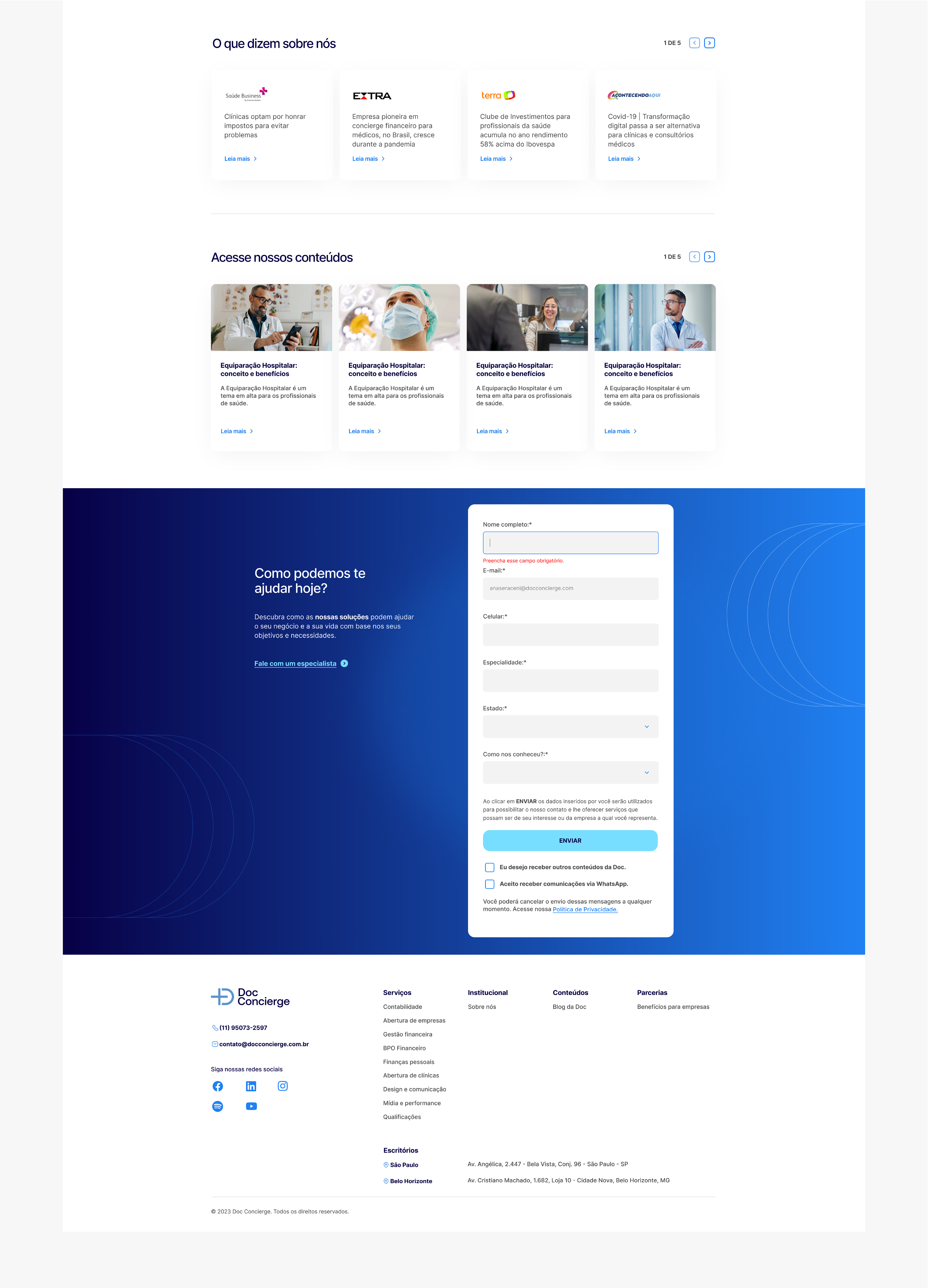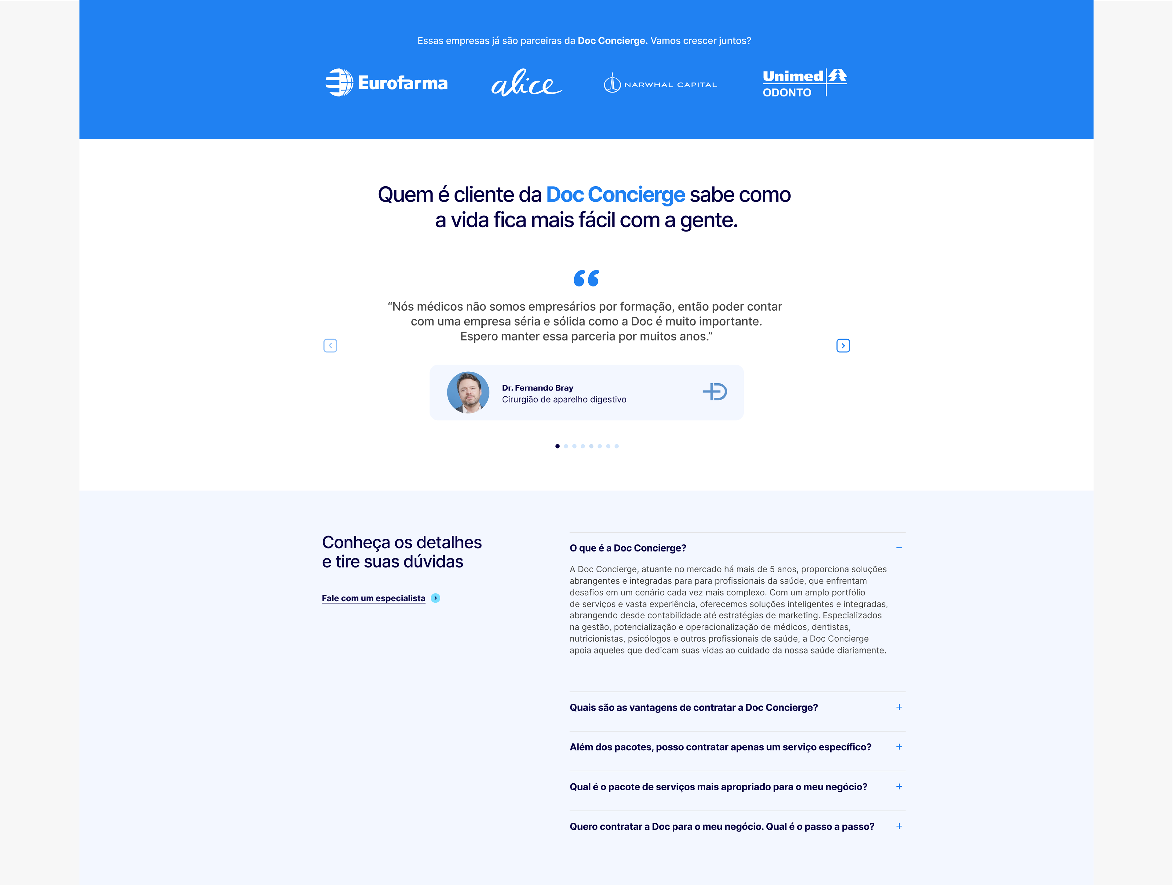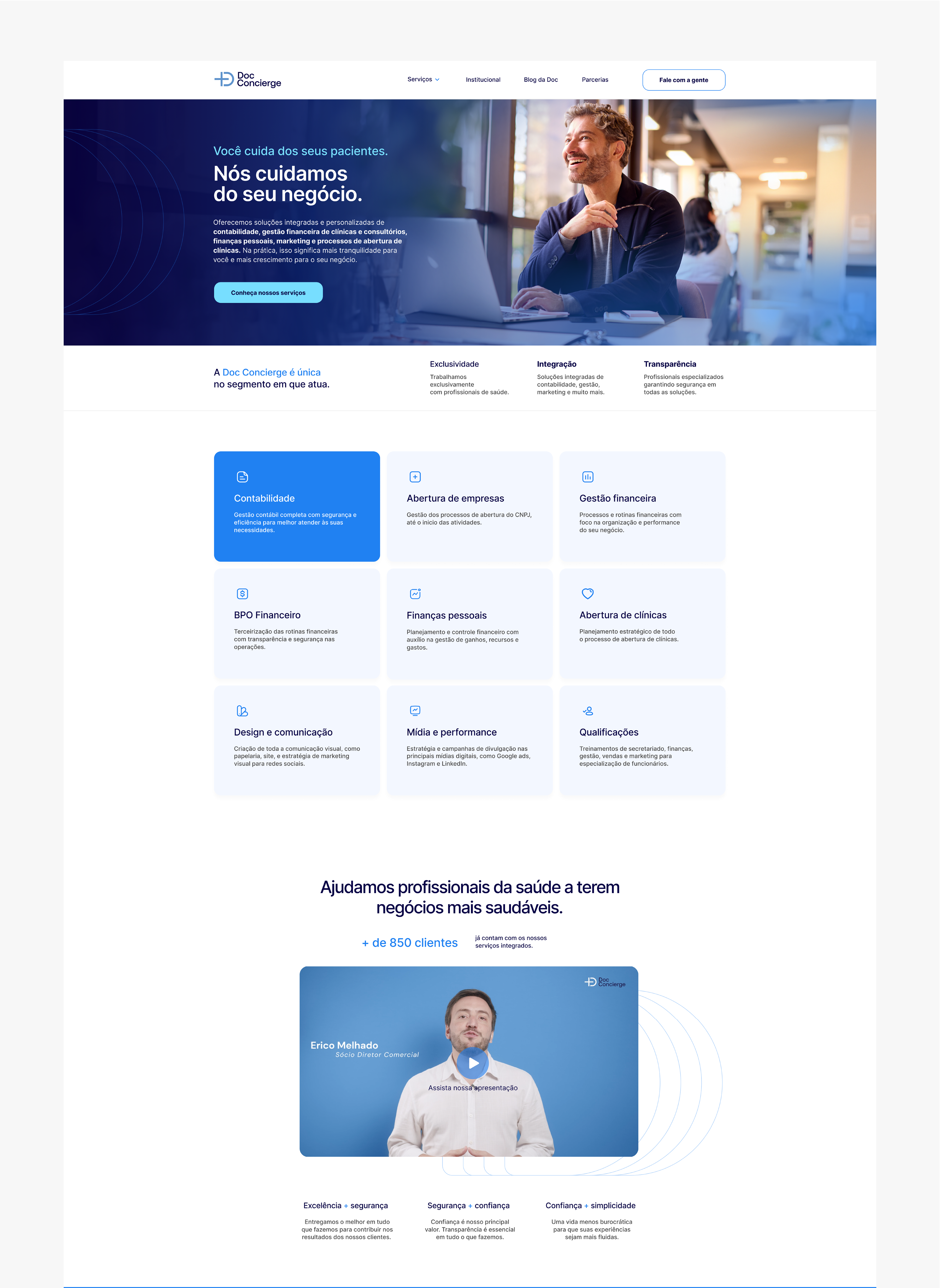 [PT-BR] A Doc Concierge oferece soluções completas para profissionais da saúde, como médicos, dentistas, nutricionistas e psicólogos. Com um olhar integrador, a empresa atua desde a contabilidade até estratégias de marketing, oferecendo um ecossistema de suporte personalizado e inteligente.